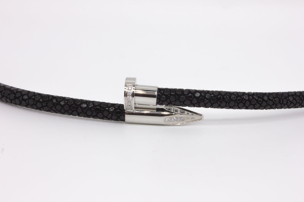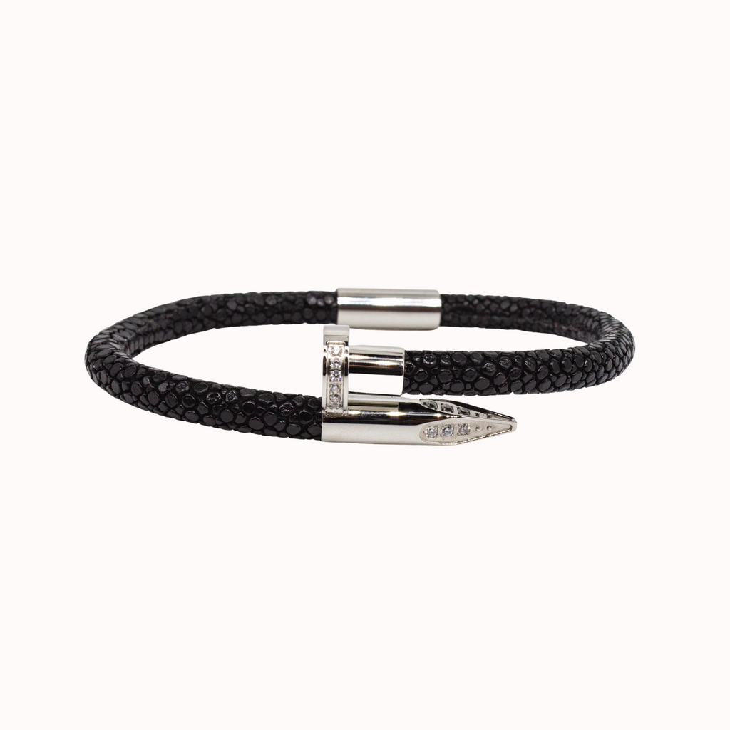 Nail Head Bangle, made from genuine stingray material along with gold and gemstone details. Giving you
